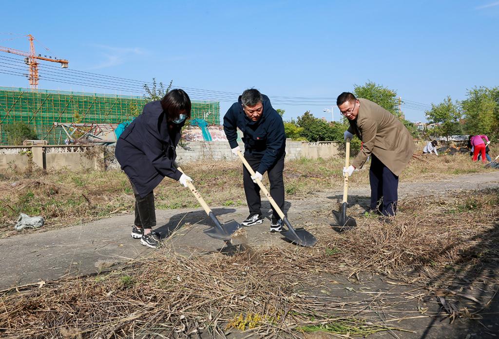 随后,全体党员来到占地面积20余亩的校区北侧备储地块,开展义务劳动。大家不怕脏、不怕累,有的扫落叶、有的捡垃圾、有的清除杂草,个个争先恐后、人人干劲十足,充分展现了共产党员冲锋在前、勇挑重担的良好精神风貌。在大家的共同努力下,校区北侧环境面貌焕然一新。