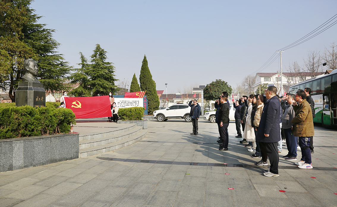 “刘少奇同志的崇高品德和高尚情操,无论过去、现在、将来都是中国共产党人和中国人民学习的光辉榜样。”在黑林镇大树村地标——刘少奇旧居广场,院党委副书记时树奎带领党员们重温了入党誓词。面对鲜红的党旗,党员们举起右拳庄严宣誓:“我志愿加入中国共产党,拥护党的纲领,遵守党的章程……”。初心,宛在一字一句间,句句铿锵,声音的交汇就是力量与信心的凝聚。