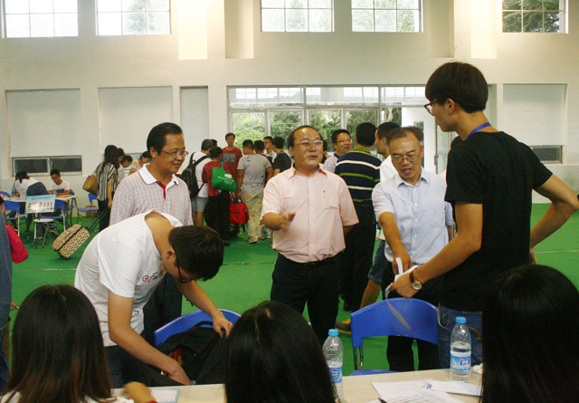 王洪法来到宋跳校区迎新工作点,详细了解2015年专转本新生报到工作流程、服务接待等方面情况。王洪法对宋跳校区暑假校园维修改造工作表示赞许,他叮嘱我院迎新工作人员以积极的工作态度、严谨的工作作风、良好的精神风貌为新生和家长提供热忱细致的服务。