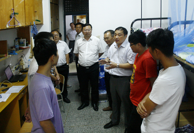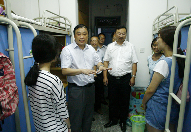 9月6日下午,校长史金飞,党委副书记、副校长宁晓明,副校长王洪法,在院党委书记周清华、院长樊华等领导班子陪同下先后来到学生公寓和学生餐厅,看望和慰问刚刚入学的2015年专转本新生。