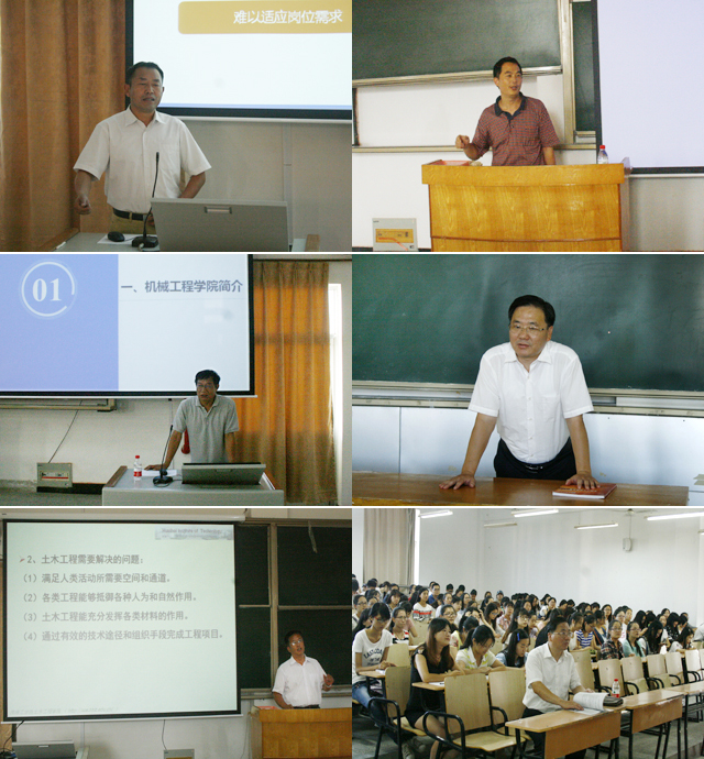 五位教授分别介绍了各个学院的发展历程、学科体系、专业特色、师资队伍、发展愿景等概况,并就专业背景、培养目标、课程设置、实验实践、就业前景等同学们关心的问题进行了深入浅出的讲解。讲座中,师生亲切互动,现场气氛热烈。最后,他们勉励同学们要深入思考自己的人生定位,切实解决学什么和如何学的问题,认真学习专业理论知识,积极参加实践活动,努力培养多方面能力,为将来走向社会、成就事业打下坚实基础。