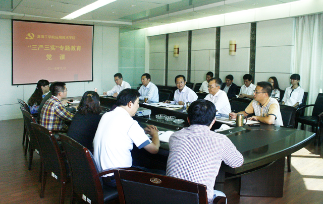 9月15日上午,我院在行政楼三楼会议室举办了“三严三实”专题教育第二次党课,院长樊华作题为“强化问题导向,以‘三严三实’作风促进转型发展”的报告。全体院领导、党支部书记、部门负责人,教工和学生党员代表参加会议。