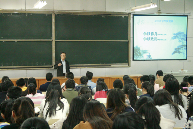 为激励我院学生树立积极向上的理想目标,立足实践,努力成为不被环境所束缚的应用技术型的人才。10月14日下午,院长樊华教授在敦行楼201室为广大学生做了与信仰对话专题讲座,讲座由党委副书记、副院长万金店主持,近200名学生干部聆听了讲座。