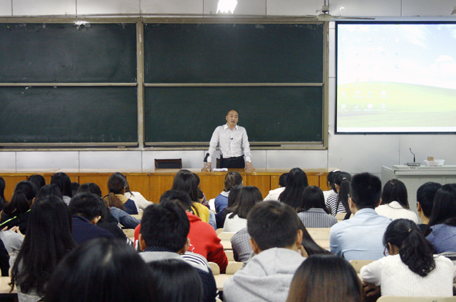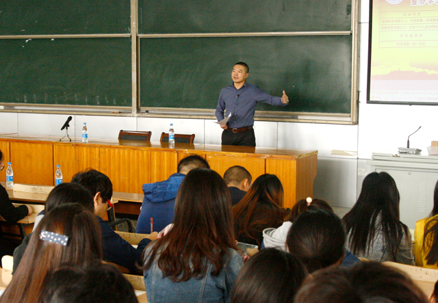 在上午的讲座中缪永胜校友以 “不服青春、终得圆满”为主题分享了个人创业成长经历。这位94级市场营销专业校友风趣地讲述了自己如何从入学时略显平庸的班级最后一名成为最早一批加入学生会的同学,如何从差点饿死街头到赚取人生第一桶金,如何从一名零时工变成公司最不可或缺的一个人,如何从为口服液送小报到从事各种推销再到拥有自己的石化生产与销售企业。他励志人生的故事带给听众 “屌丝逆袭”的赞叹的同时也让大家从中得到热爱专业、坚持所学、学以致用、踏实做事、善抓机遇、勇于接受挑战的成功启示。在讲述个人经历的同时他还就大学生如何修炼自己提出诸多宝贵建议。他用时下流行的“我是一切的根源”告诫师弟师妹命运掌握在自己手中,要善于从自身找原因,同时提醒大家解决问题的能力就是每个人的商业价值。最后他希望学弟学妹们牢记厚德载物,常怀感恩之心,在校期间争取做学生干部并提前参与社会实践,全面提升自我。