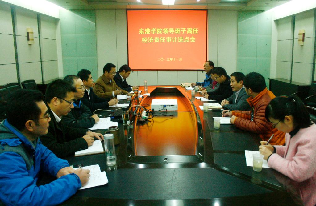 日前,校审计处在我院召开东港学院原领导班子离任经济责任审计进点会。校审计处、党委组织部有关负责同志及审计项目组全体成员,东港学院原任及现任领导班子全体成员,各部门、各党支部负责人及职工代表参加会议。