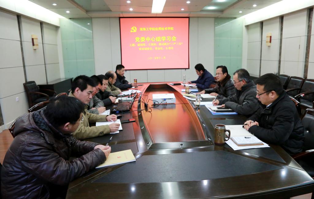 12月22日,院党委中心组召开“建制度、立规矩,推动践行‘三严三实'要求制度化、常态化、长效化”专题学习会,学习习近平在不同时期关于制度建设的若干重要论述和学校关于公务接待的规定。院党委书记周清华主持会议,全体院领导、各党支部书记和部门负责人出席学习会。