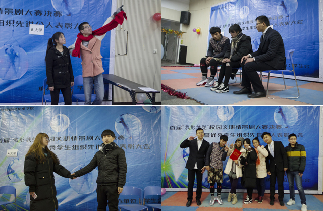 12月27日晚,我院精心策划、打造的校园文明宣传教育的特色活动——首届“我形我塑”校园文明情景剧大赛决赛在宋跳校区社联多功能厅举行。院党委副书记、副院长万金店、学工办主任、学生一支部书记张明祖、学生二支部书记孙成广、团委负责人陈姝含及辅导员老师们出席活动现场并担任评委。
