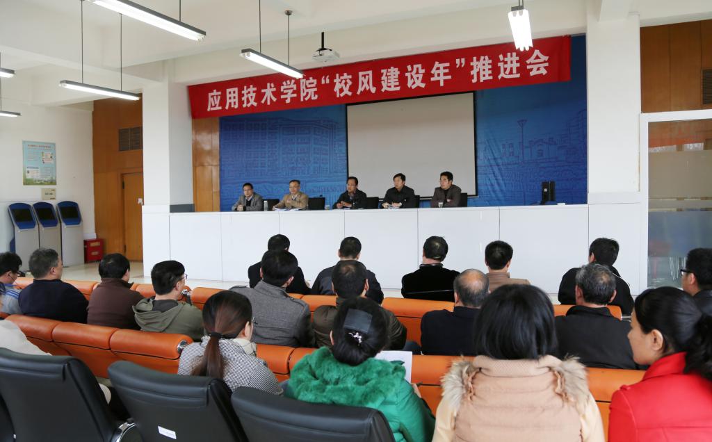 学校“校风建设年”动员大会召开以后,我院高度重视,积极行动,根据学校“校风建设年”工作部署,结合学院实际,研究制订了《应用技术学院“校风建设年”工作实施细则》和《应用技术学院学风建设工作实施方案》。学院党政认为,建设优良校风,必须把加强机关工作作风建设摆到突出位置,以务实高效、勤政廉洁的机关工作作风引领校风建设。学院在机关作风建设方面采取切实举措,近期,将在职工中开展“三服务、三增强、三提升” 主题教育实践活动。“三服务”:机关为基层服务,干部为群众服务,全校为学生服务;“三增强”:增强责任意识、增强纪律意识、增强奉献意识;“三提升”:提升服务能力、提升工作质效、提升机关形象。通过此活动力争取得五个方面成效:机关服务基层服务师生的意识有新增强,服务能力有新提高,服务方法有新改进,服务形象有新提升,服务工作有新成效。