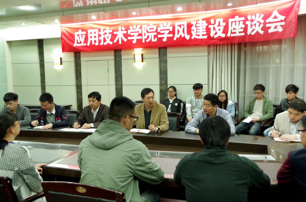 院学工办主任张明祖主持座谈会。他首先介绍了学院加强学风建设的有关安排、具体措施及本次座谈会的目的,并鼓励同学们根据自己及班级同学在日常学习、生活过程中的所见、所闻、所思、所想,实事求是地指出学院在学风建设过程中存在的问题和不足,剖析问题存在的原因与建议,帮助学院有针对性地制定整改措施加以改进。