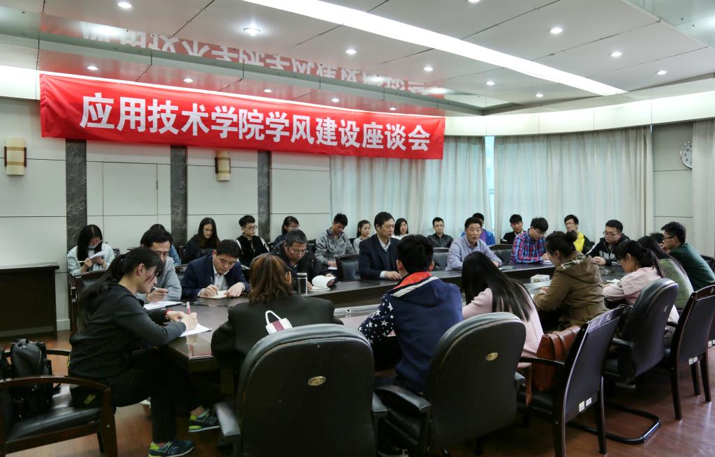 4月26日下午,我院在行政楼三楼会议室召开学风建设第二轮座谈会,进一步查摆学风建设中存在的问题,并通过更深层次的思考分析原因、商讨对策。院党委副书记、副院长万金店、全体辅导员及32名学生党员代表参加了座谈。学生第二党支部书记孙成广主持了座谈会。
