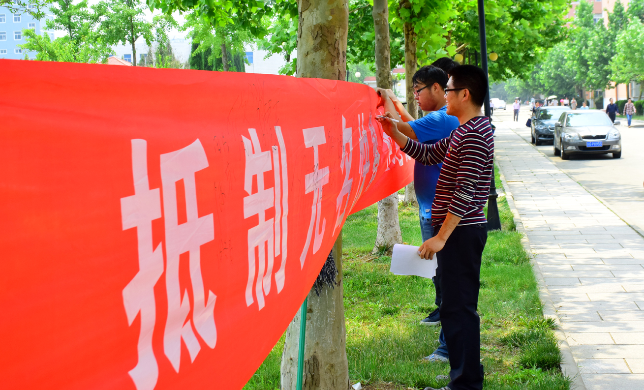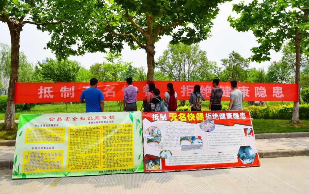 2016年6月7日中午,按照学院食品安全宣传周实施方案,保卫科联合团委在东港食堂门口开展“抵制无名快餐 拒绝健康隐患”签名活动。