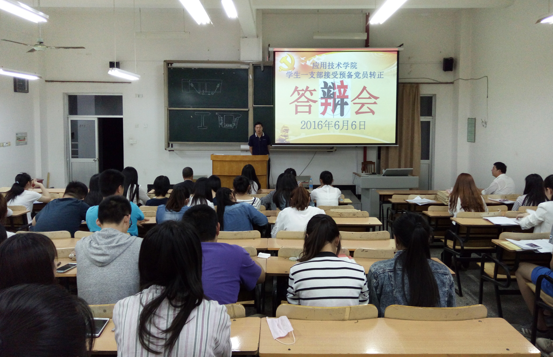 这是我院学生支部举行的预备党员转正暨接受预备党员答辩会的情景。