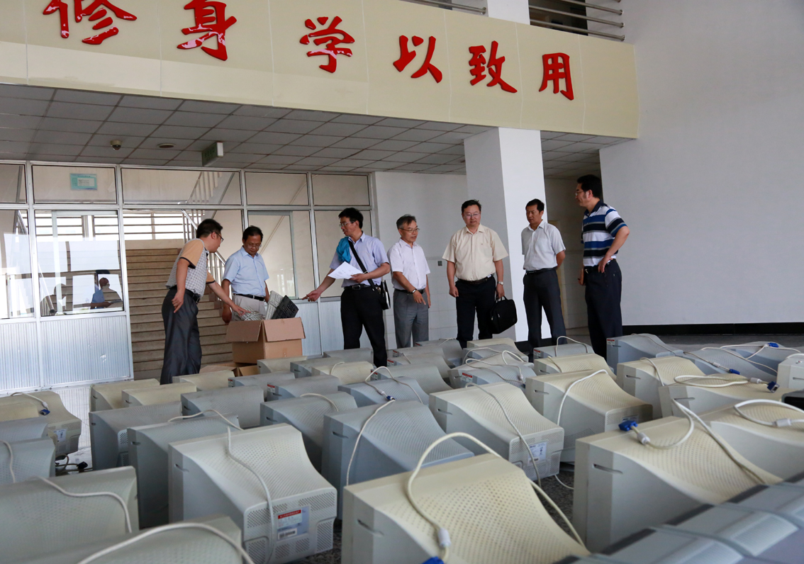 会后,宁晓明在院领导陪同下到第二教学楼察看了学院开展“两学一做”学习教育,为地方乡镇捐赠的一批电脑。
