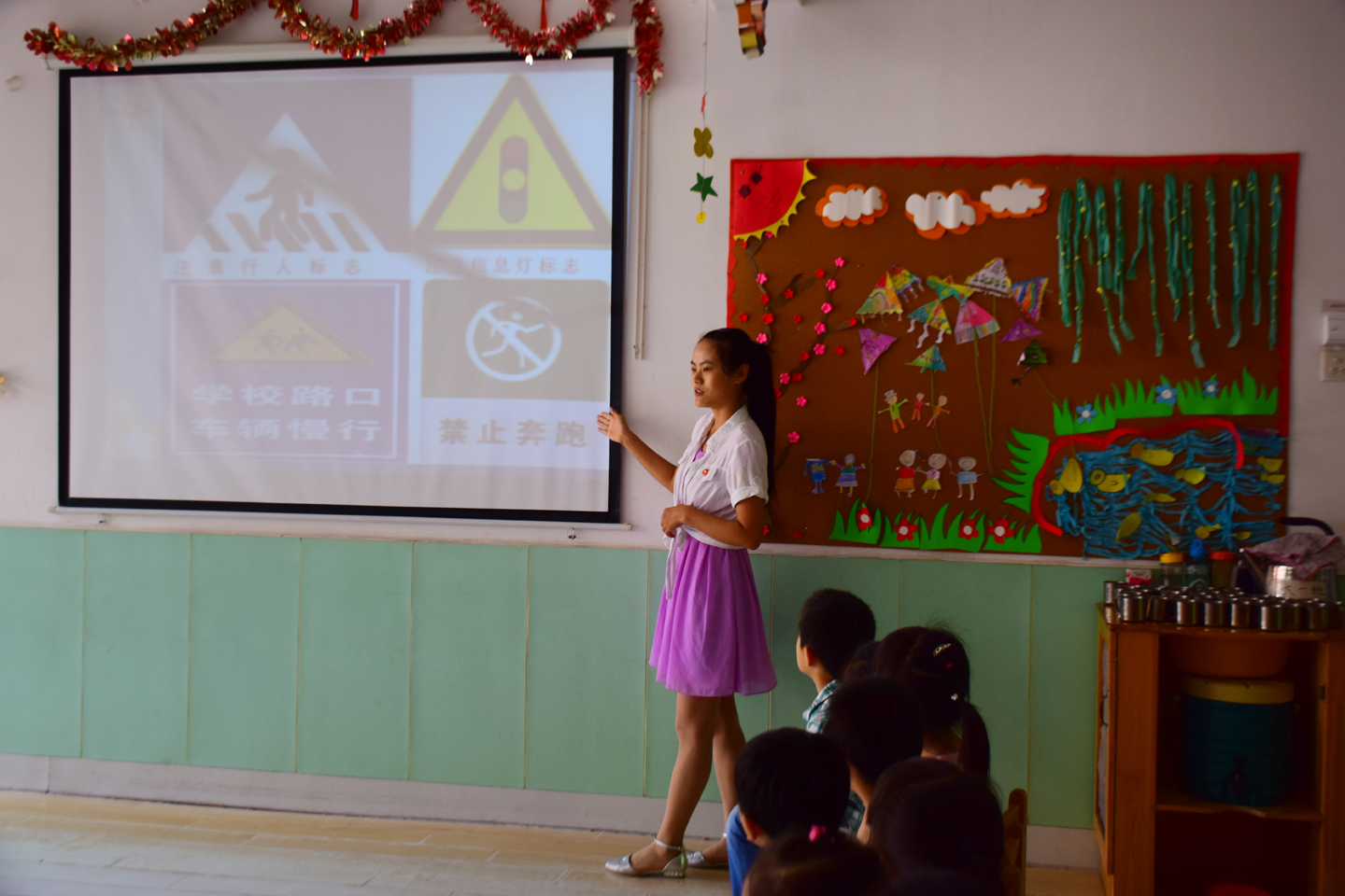 7月10日,我院学生党员“两学一做”、服务社区由日常服务向专题社会实践深入的第一天,大学生党员走进旺旺幼儿园,以主题班会的形式为即将步入小学的大班小朋友讲解“交通安全”知识。为了帮助小朋友们补充更多的交通安全知识,减少交通事故的发生隐患,大学生党员们用图片结合文字、编唱儿歌的形式帮助小朋友加深理解并牢记于心,同时以分组活动的方式帮助他们增加切身体会。
