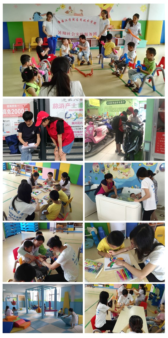 近年来,“关爱学龄前智力落后儿童·相约共成长”志愿服务项目作为我院学生工作“一院一品”特色项目接连荣获省公益大赛一等奖、省百优志愿服务项目“小薇奖”、 省青年志愿服务行动组织奖等诸多荣誉。为了进一步发挥该项目的育人实效,不断增强青年学生的社会责任意识,体现应用技术人才培养特色,我院于今年暑假期间与市妇幼保健院福佑儿童早期发展中心共建暑期社会实践基地,并将项目丰富到大学暑期社会实践活动中,深入开展了“博爱青春•关爱学龄前智力落后儿童,我们在心动”系列社会实践活动。