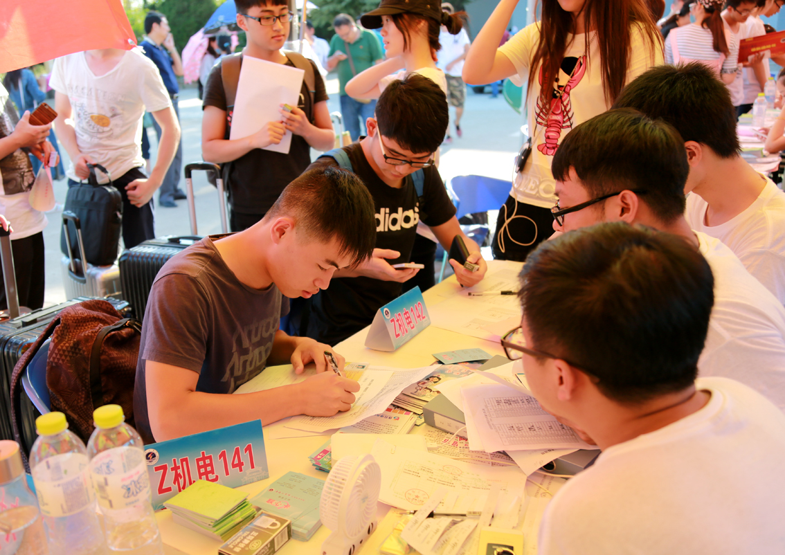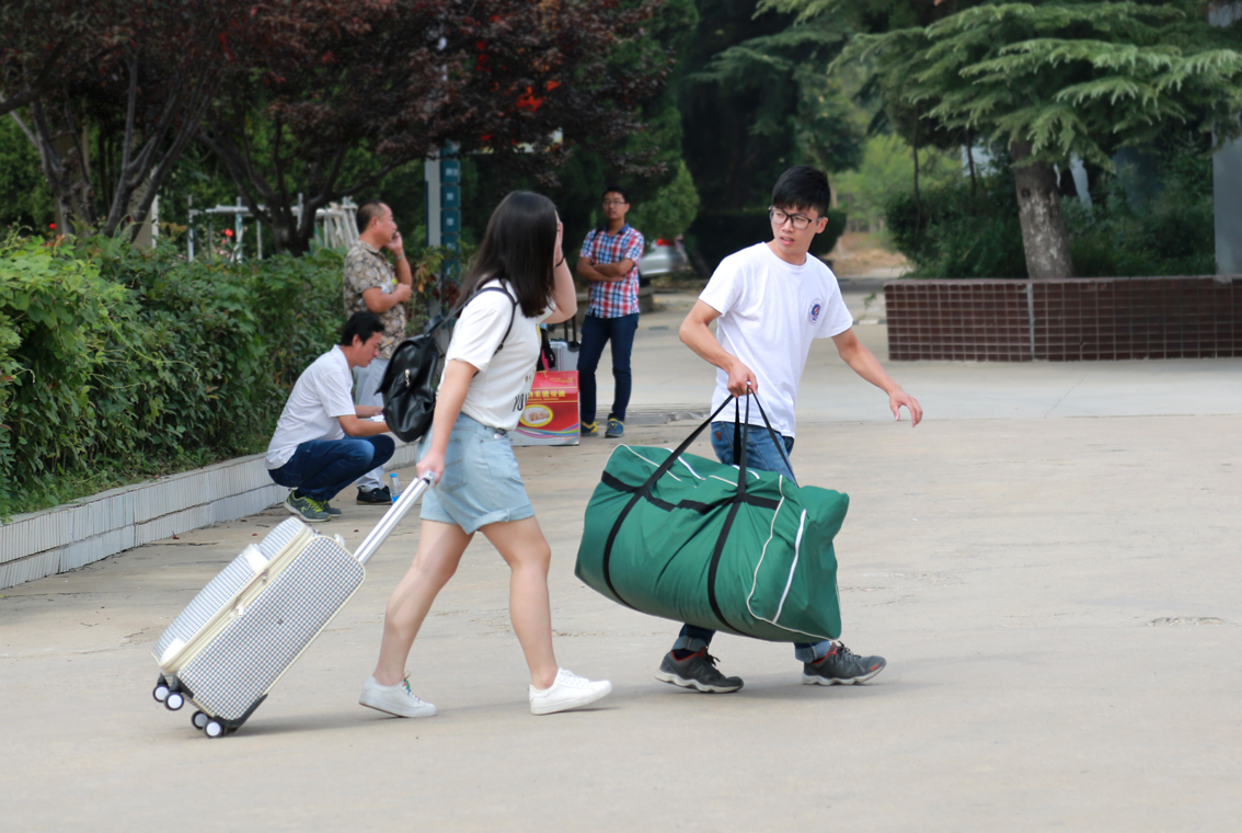 主动报名积极加入迎新的队伍的学生志愿者们成为校园里最可爱的人。9月2日一大早,着装整齐的他们便早早地支起帐篷、摆开桌登、挂起条幅。随后的两天时间里,他们拖拿行李带着新生与家长穿梭在校园的每一个角落,帮助他们办理入学手续。虽然都已经进入毕业班,但他们亲切的问候、耐心地沟通与热心的服务温暖着每一位新生与家长的心。