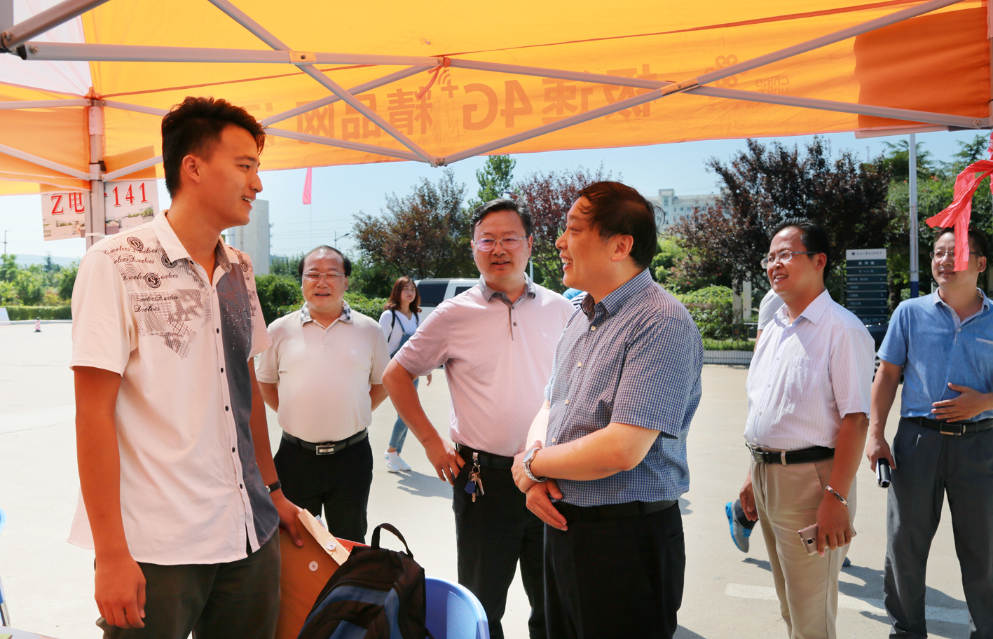 9月2日上午,校长史金飞、校党委副书记、副校长宁晓明、副校长王洪法一行在学院领导班子的陪同下视察和指导了校区迎新工作。校领导走访了新生接待处及迎新服务点,详细了解新生报到进展情况,亲切慰问迎新工作人员,并与正在办理报到手续的新生及家长亲切交谈,了解学生家庭情况与入学感受,解答新生的困难与疑惑……每一份关心都为新生增添一份温馨。