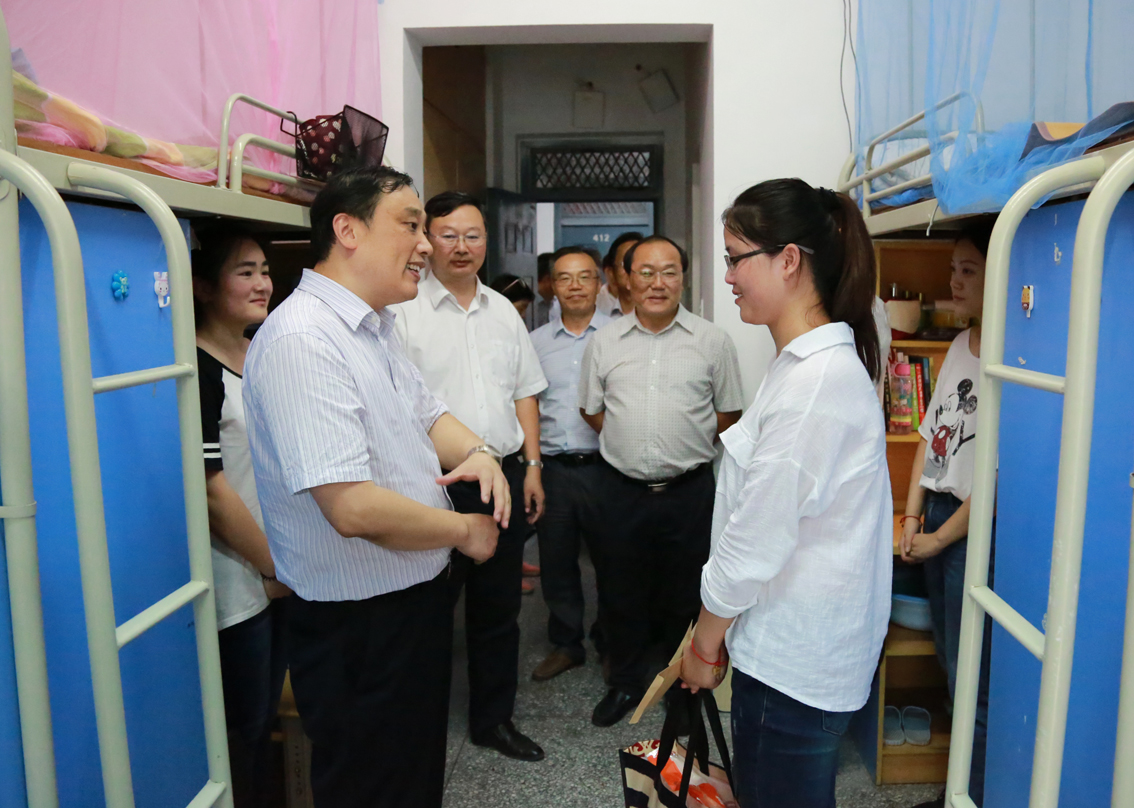 9月4日下午,校长史金飞,党委副书记、副校长宁晓明,副校长王洪法,校学生处处长汤洪涛在我院党委书记周清华、院长樊华等领导班子陪同下来到学生公寓,看望和慰问刚刚入学的2016年专转本新生。