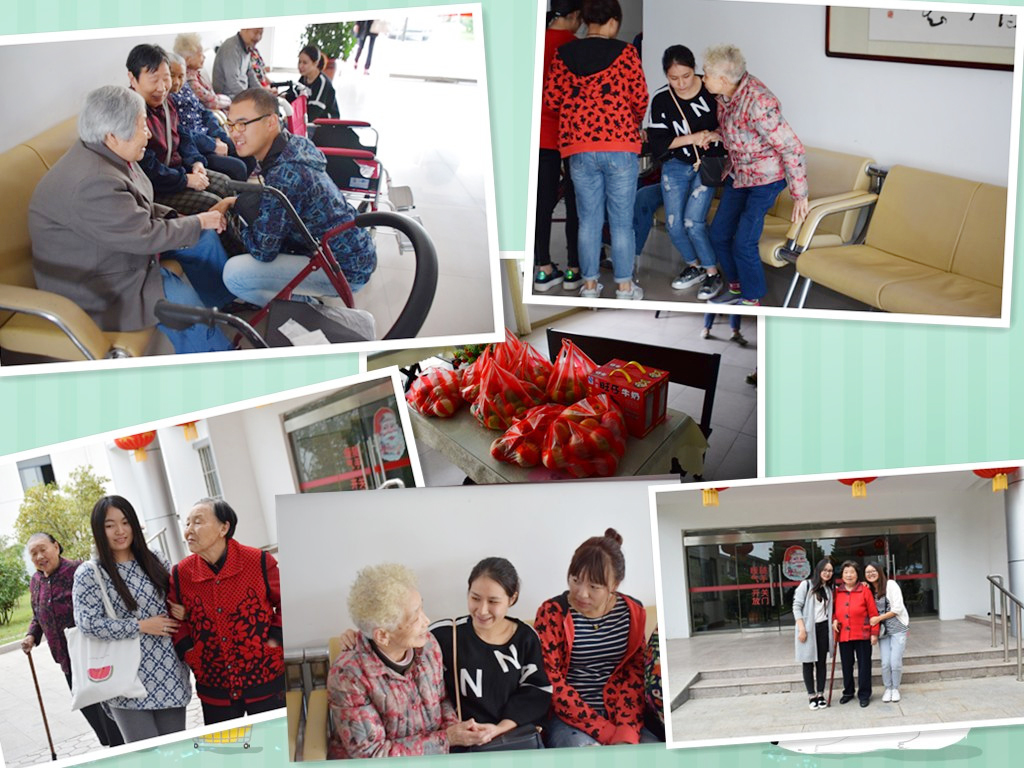 本次敬老爱心之行,同学们积极响应。同学们带着为老人精心准备的水果、牛奶,来到花果山颐养院帮助老人打扫房间、擦洗桌椅,并与老人谈心、散步。