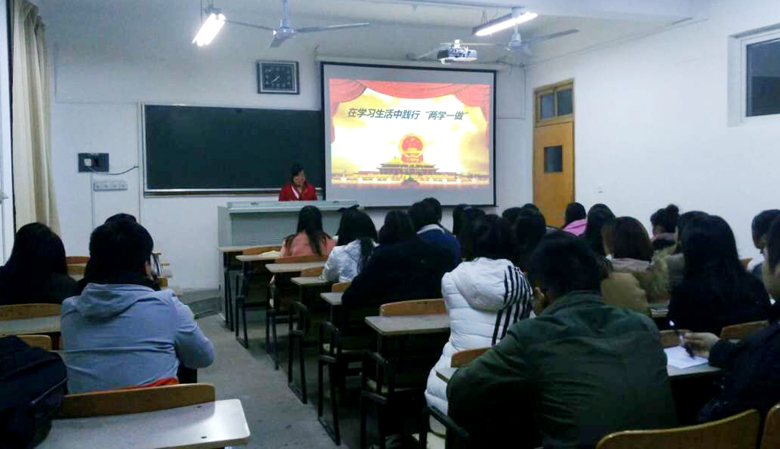 在“两学一做”学习教育中,我院学生党支部积极探索党课教育新途径,鼓励每位学生党员主动走上讲台将所学、所做、所思、所悟讲给身边的入党积极分子、青年团员和普通群众听,通过生带生双向教育深化内涵、增强效果。