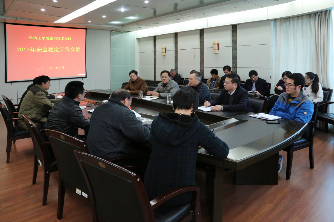 日前,学院在行政楼三楼会议室召开了2017年安全稳定工作会议。院长樊华主持会议,院党委书记周清华、党委副书记、副院长万金店,副院长张根友、沈加君出席会议。各部门负责人和全体辅导员参加会议。