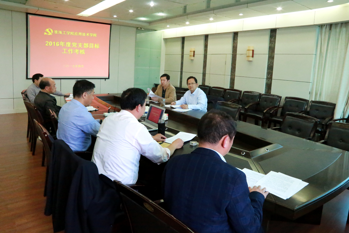 为深入贯彻落实全面从严治党要求,推动基层党建工作规范化、制度化、科学化建设,不断增强党支部凝聚力和战斗力,根据《淮海工学院党支部建设工作目标及考核办法》,4月28日,学院党委对机关、学生等4党支部2016年度建设工作目标进行考核。党委书记周清华主持会议,党委副书记、副院长万金店,各党支部书记、党政办负责人参加了考核会。