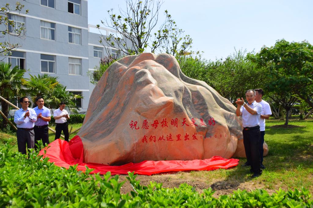 同窗盐校同业同心,共聚母校共创共赢。5月29日,三百余名93级校友换上带有班级特色的纪念衫,相聚在淮海工学院宋跳校区,饮水思源,心系母校,回到峥嵘岁月的起点。上午9点,院领导及校友在厚德楼前见证了93级校友赠母校景观石的捐赠仪式。我院党委书记周清华老师、院长樊华老师以及校友代表史炳清、李雪涛共同为景观石揭幕。樊华老师在讲话中对校友返校表示了热烈的欢迎,校友代表许文军则表达了对母校的深深感恩。仪式结束,院领导及93级校友纷纷合影留念,定格了二十年后再次重逢的珍贵时刻。景观石的正面镌刻着“祝愿母校明天更美好,我们从这里出发”的字样,是93级校友的如火青春、二十年同窗之情的缩影,是对原江苏盐校、现在的淮海工学院的感谢,更是对未来的江苏海洋大学的憧憬。