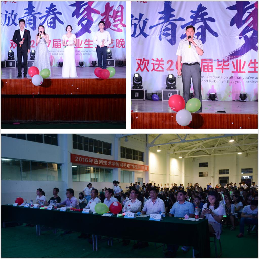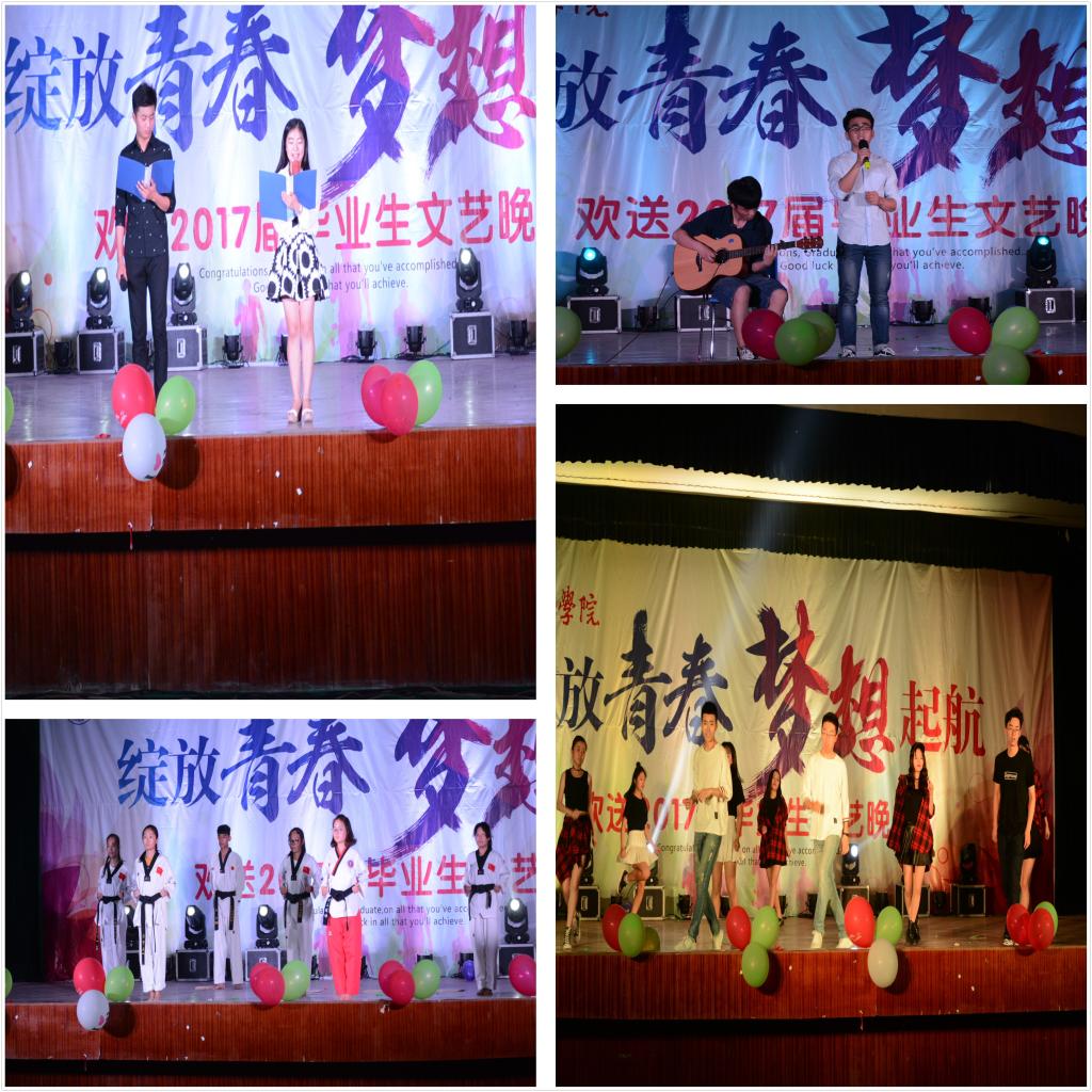 6月9日晚,我院“绽放青春 梦想起航”欢送2017届毕业生晚会在行健馆隆重拉开帷幕。院党委书记周清华,副书记、副院长万金店,副院长张根友、沈加君,阿里巴巴苏州大科人才公司总经理谢明,学工办主任张明祖,辅导员、团委老师与数百名学生一同观看了精彩演出。