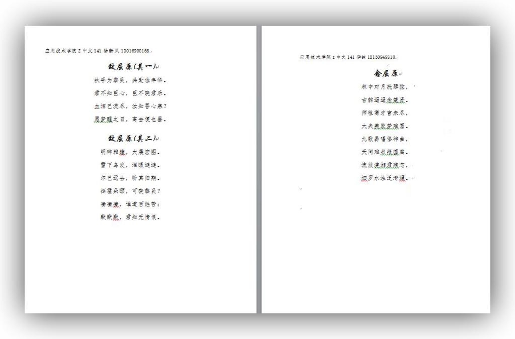 本次诗词征集作品以端午为主题,体裁包括古体诗词、新体诗、散文诗。活动得到了学子们的积极响应。他们多以纪念伟大爱国主义诗人屈原为主线进行创作,由心而发的诗词中既不乏慷慨壮志,又深蕴缅怀柔情,用“忠洁一跃留千古”“离骚九章万古传”追忆吊念,以“三闾忠魂动天地”“天问难书报国篇”抒发情怀。经过评选,我院Z中文141徐新凤、李纯、朱鸿娜,文学院中文151郝甜甜、胡艺龄,中文152刘小平等同学分获一、二、三等奖。