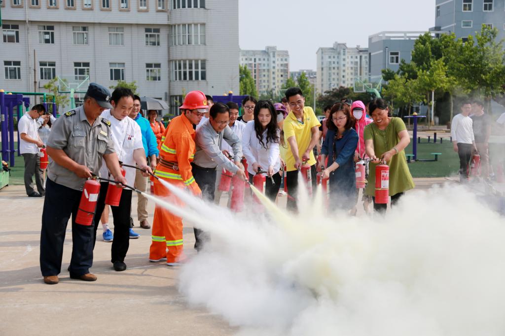 演练前,学院党委副书记、副院长万金店同志介绍了我院近阶段的消防工作现状,近段时间以来高校系统,特别是我院发生的火灾、火情。强调消防工作要警钟长鸣,常抓不懈。随后保卫科黄彬讲解了手提式干粉灭火器的灭火原理、示范了使用方法。党委书记周清华同志第一个带头演练了灭火器灭火,随后师生们按照顺序演练了灭火器灭火。