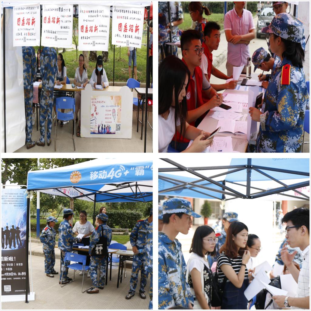 9月18日至20日,我院学生组织及社团招新在食堂门口火热进行,成为校园里一道亮丽的风景线。参加本次招新的有团委、学生会、青协、新媒体、羽毛球社、TSD舞蹈社等16个学生团体。