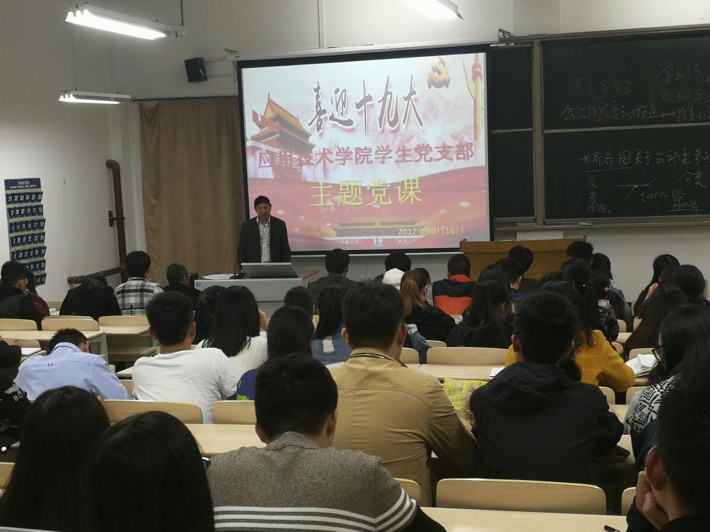 10月16日晚,我院学生党支部结合常态化制度化“两学一做”学习教育在敦行楼213教室举办“喜迎十九大”主题党课,以“最党内”的形式献礼党的十九大。学院全体辅导员、学生党员参加了本次党课。