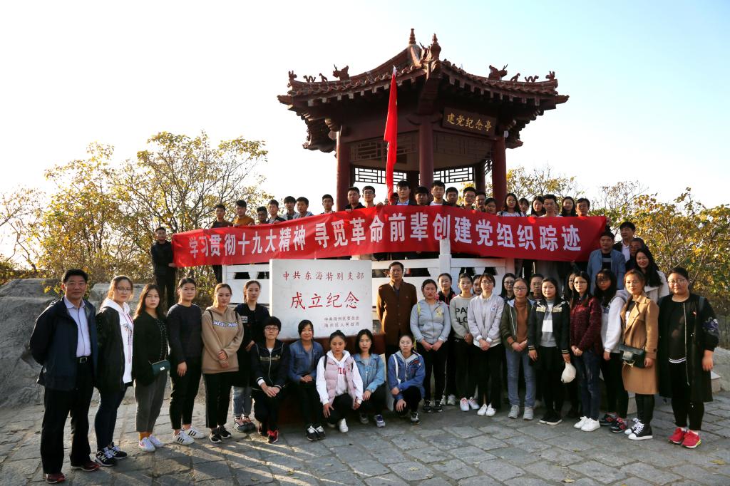 11月8日下午的学院首个“党员活动日”中,学生党支部全体师生党员来到承载连云港地方建党印记的海州白虎山,以学习十九大精神、回顾建党历史、重温入党誓词等形式深入开展“学习贯彻十九大精神寻觅革命前辈创建党组织踪迹”主题党日活动。