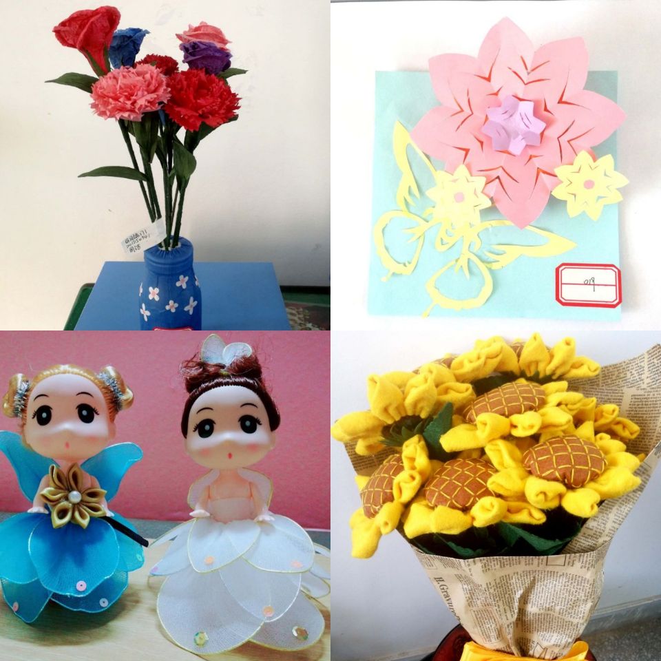 此次比赛以学思践悟十九大,提升大学生的创新能力和实践动手能力为宗旨,历时两周,收集原创手工创意作品数十件。有传承优秀传统文化的剪纸“一纸情缘”、刻纸“中国梦”、折纸“遮阳伞的故事”,有体现传统工匠技艺的发簪制作“一梦华胥”、布艺“幸福像花儿一样”、十字绣“时来运转”、钻石绣“马到成功”、麻绳艺编、编织手链,还有利用发旧物品改造体现环保创意的“龙猫”、“双生姐妹花”、 “手机支架”、“汽车药箱”等各式各样的手工作品。其中作品“龙猫”更因体现几位男生作者的独具匠心,受到师生的一致好评,作者用体现传统文化花中四君子之一的竹子加以藤条编织成底座,配以校园随处可见的绿植点缀,融入卡通形象友善的森林守护者龙猫,让整个充斥着盎然的生机活力,体现生态文明的主题。