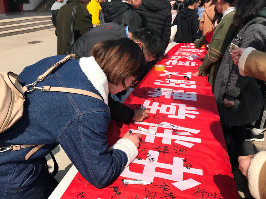 活动通过签名、PU平台宣传、微信推广等方式进行。活动现场,同学们积极参与横幅签名,耐心聆听志愿者讲解的相关活动内容,并表示积极响应学校的号召,从自身做起,养成良好的道德习惯,为创建干净舒适的学习环境贡献自己的一份力量。