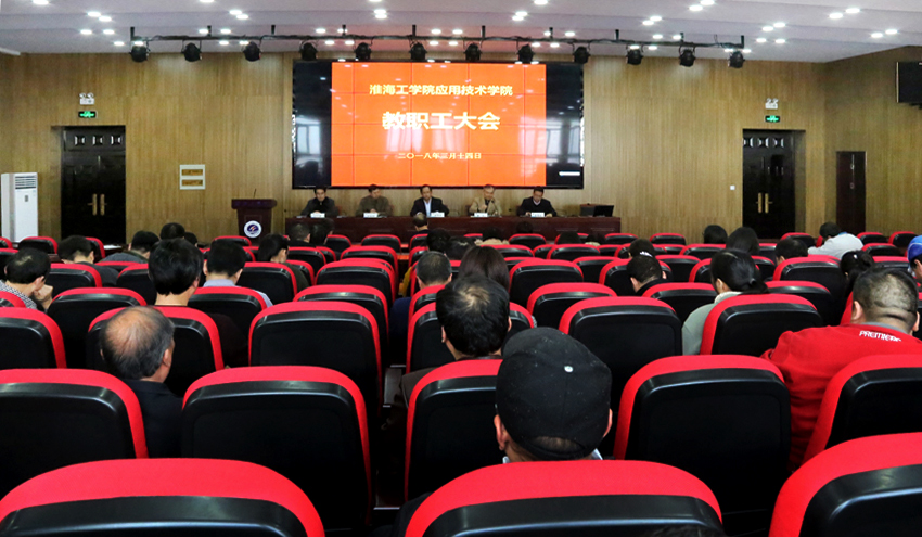 樊华在报告中通报了学校下达应用技术学院2018年主要目标任务。他指出,2018年是淮海工学院大学建设冲刺年,也是应用技术学院推进人才培养模式改革十分关键的一年。学院全年工作要以目标为导向,务必抓实“两个确保”,即确保全面完成2018年度党建、思政、教学、科研、学生工作各项目标任务,确保2018年新生入学保障工作。他强调,今年学院工作任务十分繁重,全院上下要一起想办法、动脑筋,保质保量地完成各项办学任务。