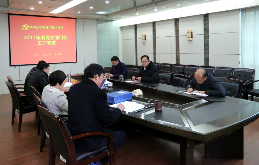 为深入贯彻落实全面从严治党要求,进一步推进基层党建工作规范化、制度化、科学化,不断提高党建工作水平,根据《淮海工学院党支部建设工作目标及考核办法》,3月22日下午,学院党委对全院4个党支部2017年度建设工作目标进行考核。党委书记周清华主持会议,党委副书记、副院长万金店,各党支部书记、党政办负责人参加了考核会。
