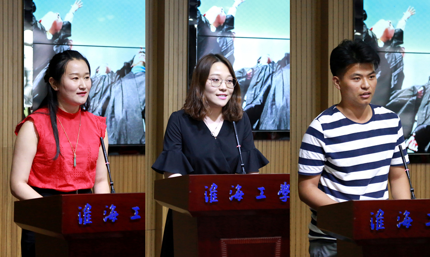 毕业生代表工商142班戴晓琪同学发表毕业感言,感谢母校、感谢老师多年来的辛勤培育,表示要秉承严师尊道、明德至善的校训,在各个领域努力进取、追求卓越!