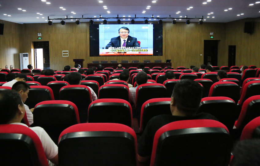 会上,全体教职工观看了十三届全国人大一次会议秘书处法案组组长、全国人大常委会法工委主任沈春耀,法案组副组长、全国人大常委会法工委副主任郑淑娜就“宪法修正案”相关问题回答中外记者提问的视频录相。