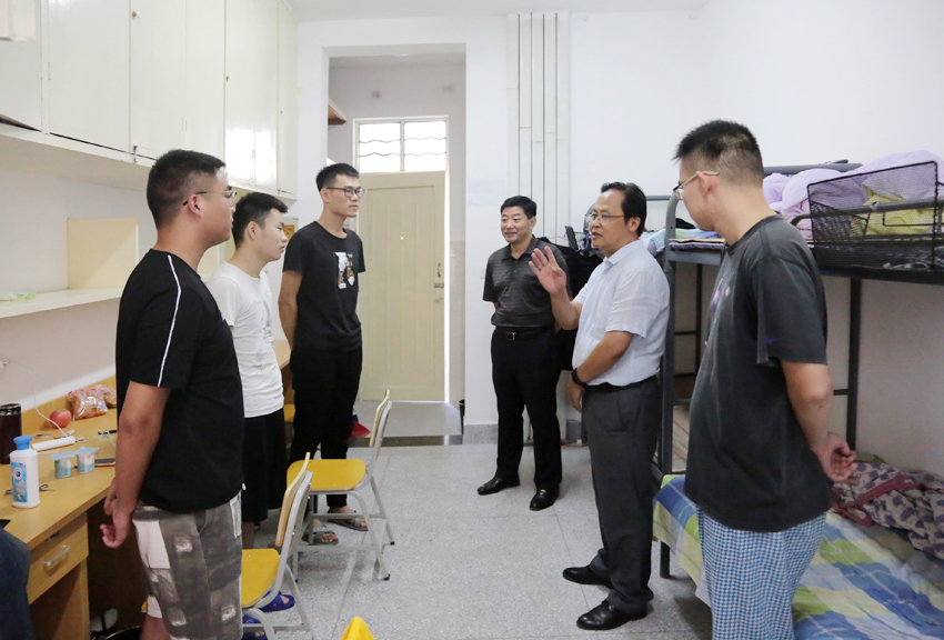 9月8日下午,院领导周清华、樊华、万金店、张根友、沈加君分别率领学工部门辅导员,深入3号、7号和8号学生公寓,看望2018年新生,第一时间送上学院的殷切关怀和亲切问候。