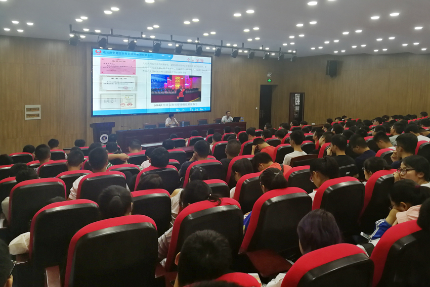 入职前做传菜生以勤奋踏实的工作表现获得双倍工资,入职后勤于钻研,三年时间从一名专科生做到部门主管,现如今掌握4项实用新型专利与3项发明专利并先后获得连云港市劳动模范、甘肃在江苏优秀务工人员、集团青年岗位能手、公司科技进步奖、技术革新奖、十佳员工、技术标兵、先进个人、优秀共产党员等20多项荣誉……李忠祥结合自身事例生动讲述了一名应用技术技能人才的成长、发展历程,同时从脚踏实地、任劳任怨,爱岗敬业、潜心钻研,勤于学习、勇于创新三个方面对新生进行了详细的学习、职业、人生规划指导。