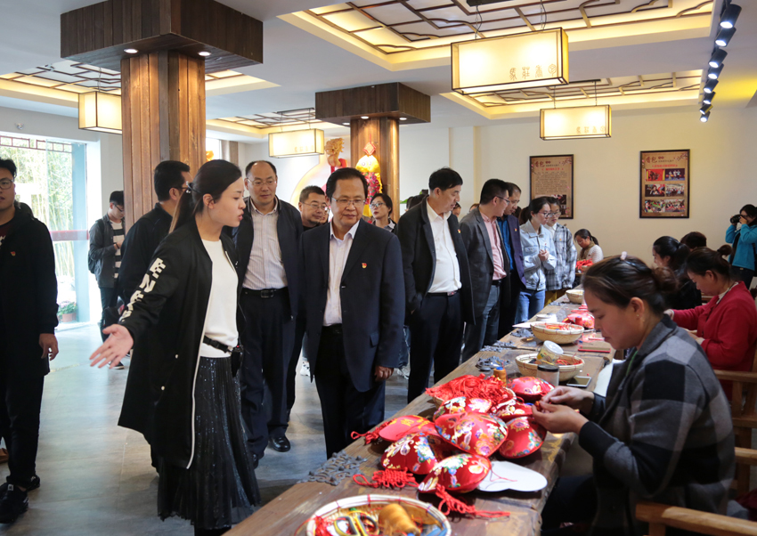 潘安湖畔的马庄村,不仅是乡村振兴的中国样板,也是基层党建的典型示范。在马庄村,师生党员们重走了总书记十九大后首次调研路线,详细参观了马庄文化大礼堂、马庄村史馆、支部党员活动室、王秀英香包工作室、网络化服务管理中心、综合服务室以及新近落成的马庄香包文化大院。对马庄村党建工作及其经济发展等进行了实地学习的同时深切感受“一马当先的勇气、跃马扬鞭的速度、马不停蹄的毅力、马到成功的效率”的马庄精神。