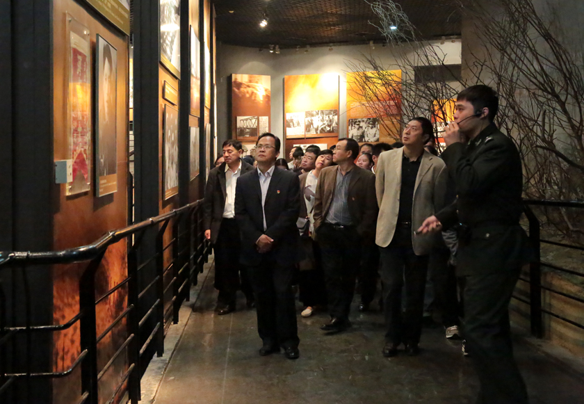 凤凰山麓的淮海战役烈士纪念塔,不仅是光荣历史的见证,也是激励后人的丰碑。在学院党委书记周清华的带领下,师生党员们齐聚塔前,举行了庄严的重温入党誓词仪式,并怀着崇敬的心情瞻仰了在战役中英勇牺牲的烈士英名录。随后师生党员们在讲解员的引导与讲解下,认真参观了淮海战役纪念馆的序厅、战前形势、战役实施、战役胜利、人民支前、缅怀先烈、全景画馆等全部展厅,透过馆中一幅幅珍贵图片、一件件历史遗物、一段段英勇事迹重温中国革命走向伟大胜利的历史进程,深切感受到革命先烈的大无畏牺牲精神与共产党员的无私奉献精神。