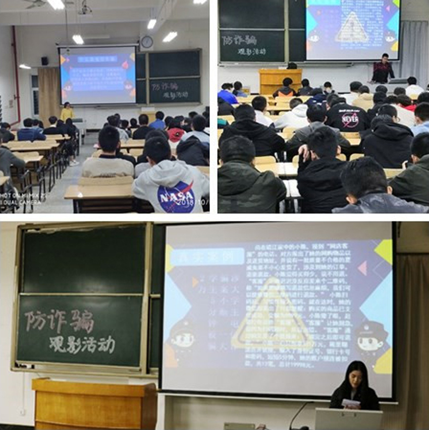 观看电影“巨额来电”,解密诈骗手段。为了让同学们对于生活中常见的诈骗进行初步了解,我院通过主题班会的形式,在全院范围内组织新生观看“防诈骗”微电影,以生动形象视觉冲击展示电信诈骗危害性。