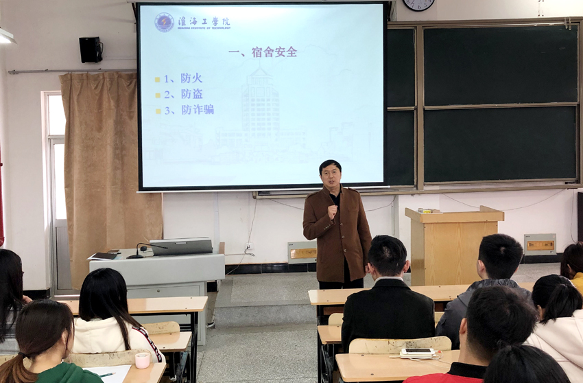 院党委副书记、副院长万金店在大会上对《应用技术学院学生宿舍管理规定》和《应用技术学院学生宿舍行为奖惩办法》作了详细的解读;万书记结合具体案例提醒同学们在宿舍要注意防火、防盗、防诈骗,并对目前我院宿舍的安全状况作了梳理,通报了学生工作办公室本学期两次学生宿舍安全检查的情况。在会上,万书记要求同学们在宿舍内严禁使用违禁电器,要绝对保证同学们的人身和财产安全。万书记要求,大家要共同努力,真正维护学生正常的学习、生活秩序,保护全体学生的利益,为广大学生创造健康向上的文明风气、安静舒适的学习生活环境、安居乐学的宿舍文化氛围。