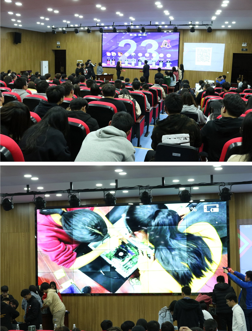 经过初赛的笔试和拆装机比拼后,共有4支队伍晋级决赛。决赛在我院舞蹈协会带来的开场舞holiday表演中拉开帷幕。