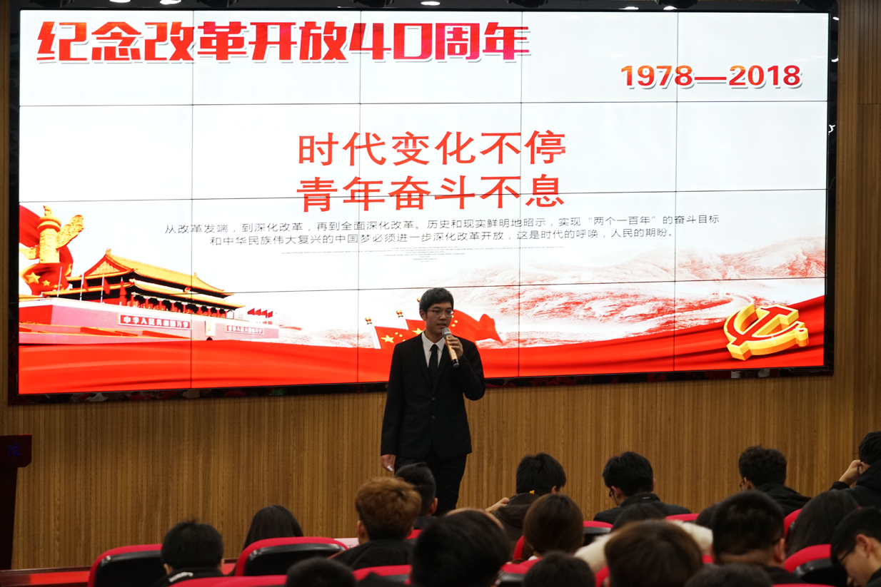 决赛围绕改革开放40周年,以“改革铸就辉煌,奋斗实现梦想”为主题,分为演讲组和朗诵组两个板块,分别有六组选手进入决赛。