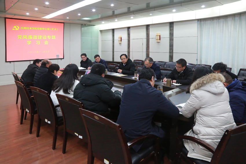 12月10日上午,院党委中心组在行政楼三楼会议室召开党风廉政建设专题(扩大)学习会,院全体领导班子,各党支部书记、各科办负责人出席会议。党委书记周清华主持会议。