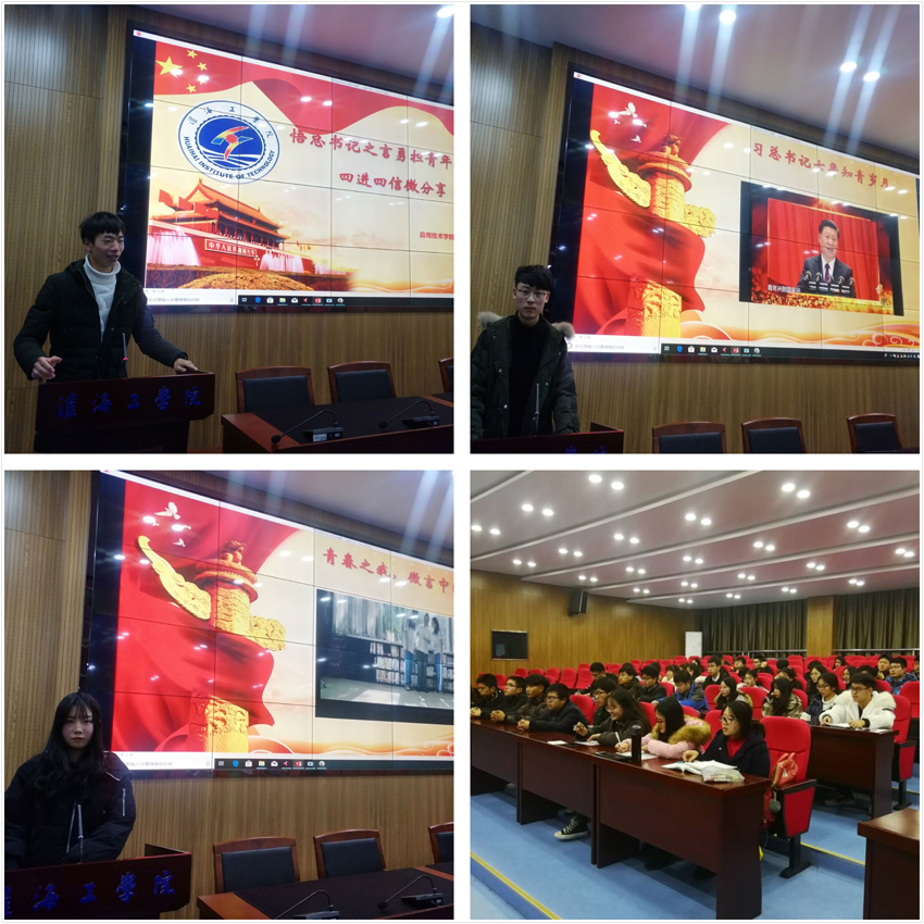新思想引领新时代,新使命开启新征程。为响应团中央学习宣传贯彻习近平新时代中国特色社会主义思想,我院团委以“学思践悟”和“知行合一”为核心理念,通过举办“四进四信”播报员活动,以同学们喜闻乐见的形式实现,在校园内传播新思想,实现“四信”目标。