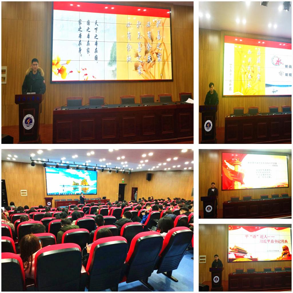 为全面贯彻落实党的十九大精神和习近平新时代中国特色社会主义思想,号召新时代青年增强文化自信。近日,我院团委举办了“青年大学习,青春大讲堂”活动,为青年人搭建学习、交流的平台,进一步促进青年学生理解习近平总书记的治国理念,努力提升自己的政治修养和道德素养。